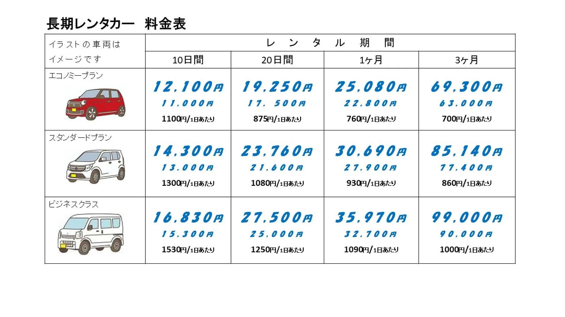 ※長期レンタカーは予約制とさせていただいております。ご予約は2営業日前までにお願い致します。